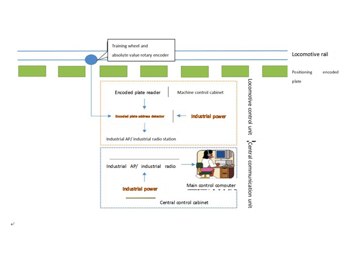 The rotary encoder is coaxially connected with the auxiliary wheel. The auxiliary wheel connects the locomotive body and the locomotive power wheel on the same track, so that the rotary encoder is not coaxial with the locomotive power wheel, which basically eliminates the situation where the power wheel slip affects the address and facilitates installation and maintenance.