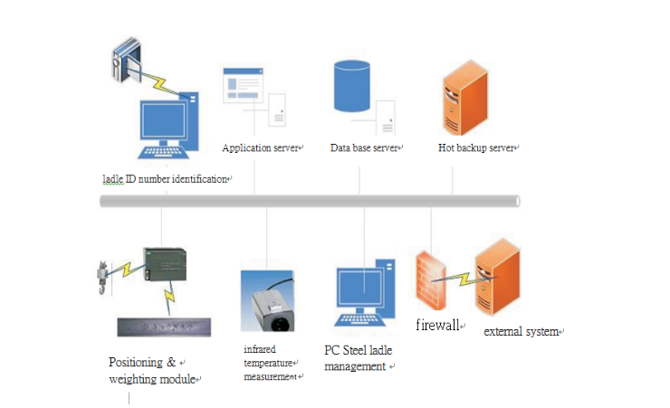 According to furnace production schedule and ladle real time status, steel ladle management and intelligent scheduling system schedules appropriate ladle to each furnace of molten steel and records transportation status of molten steel. Steel ladle management and intelligent scheduling system realizes basic information of steel ladle in steel making production (weight, temperature, components, location, etc.), collects and analyzes status data, schedules and lifts ladle, automatically tracks ladle flow path, and monitors ladle status in real time.