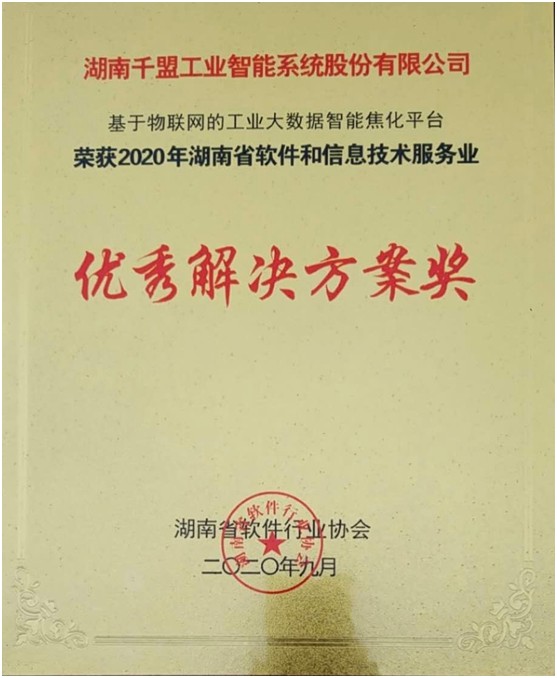 湖南千盟榮獲2020年湖南省軟件和信息技術(shù)服務(wù)業(yè)50強(qiáng)。與此同時(shí),我司自主研發(fā)的“基于物聯(lián)網(wǎng)的工業(yè)大數(shù)據(jù)智能焦化平臺(tái)”榮獲2020年湖南省軟件和信息技術(shù)服務(wù)業(yè)“優(yōu)秀解決方案獎(jiǎng)”!