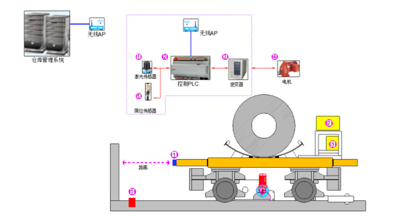 過跨車主要用于庫與庫之間、跨與跨之間轉(zhuǎn)運(yùn)物料,通過對(duì)過跨車進(jìn)行無人化改造,實(shí)現(xiàn)自動(dòng)轉(zhuǎn)運(yùn)。網(wǎng)絡(luò)通信
