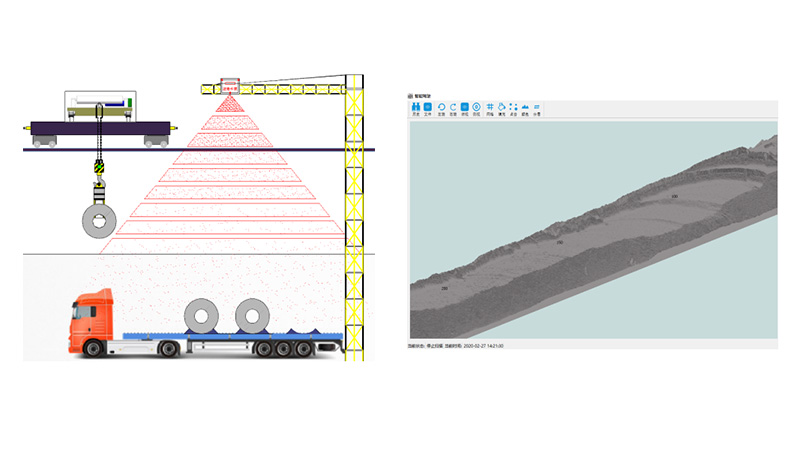 三維掃描是利用激光掃描、視覺成像、高精度云臺(tái)等技術(shù)獲取料堆或汽車的輪廓,生成物料的三維坐標(biāo),指導(dǎo)天車精準(zhǔn)作業(yè)。應(yīng)用場(chǎng)景有汽車掃描識(shí)別、料堆成像。智能調(diào)度