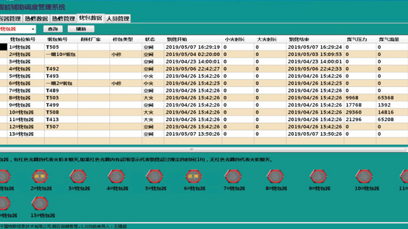 鋼包管理及智能調(diào)度系統(tǒng)根據(jù)爐次生產(chǎn)計劃和鋼包的實時狀態(tài),為每爐鋼水分配合適的鋼包,并記錄鋼水的運輸狀態(tài)。鋼包管理及智能調(diào)度系統(tǒng)實現(xiàn)煉鋼生產(chǎn)環(huán)節(jié)的鋼包基本信息(重量、溫度、成分、位置等)、狀態(tài)數(shù)據(jù)的采集與分析,指導鋼包分配與吊運,自動跟蹤鋼包流轉(zhuǎn)路徑,并對鋼包狀態(tài)進行實時監(jiān)控。